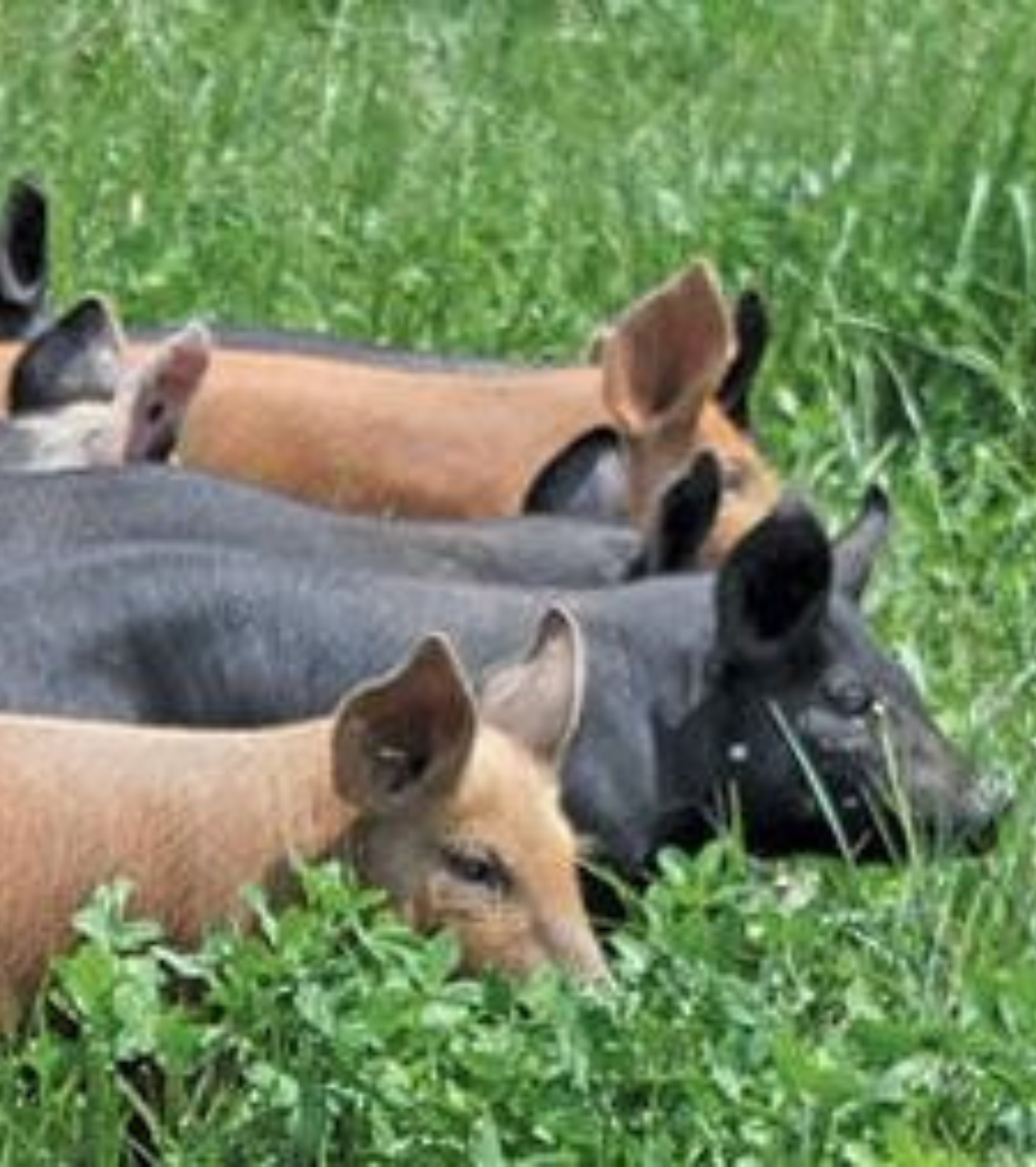 We believe you deserve to know where your meat comes from…Ours; is always raised in low stress environments, NO antibiotics, growth hormones, or vaccines, ever! We rotate our herds across fresh pastures in order to rest the dirt and encourage diverse forage. This allows each paddock to fully recover before the pigs cycle through again…. It’s all about regenerative agriculture with one clear goal on Boggy Bay: manage the soil, water and livestock better every year while putting better food on your table today.